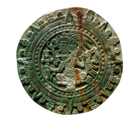 Bei der Humboldt-Scheibe handelt sich um einen aztekischen Kalenderstein. Im Mittelpunkt befi ndet sich der Sonnengott Tonatiuh. Er ist sitzend mit gekreuzten Beinen dargestellt, trägt Nasen- und Ohrpfl ock, Kopfputz, Arm- und Unterschenkel-Schmuck sowie zwei nach unten gerichtete Speere. Die 48 kleinen Kreise und die 13 Doppelstriche bilden den Kalender. Er entspricht durch seine runde Form der kreislaufartigen Zeitauffassung der Azteken.